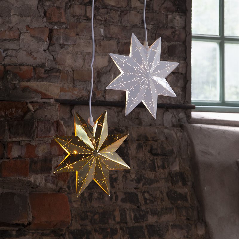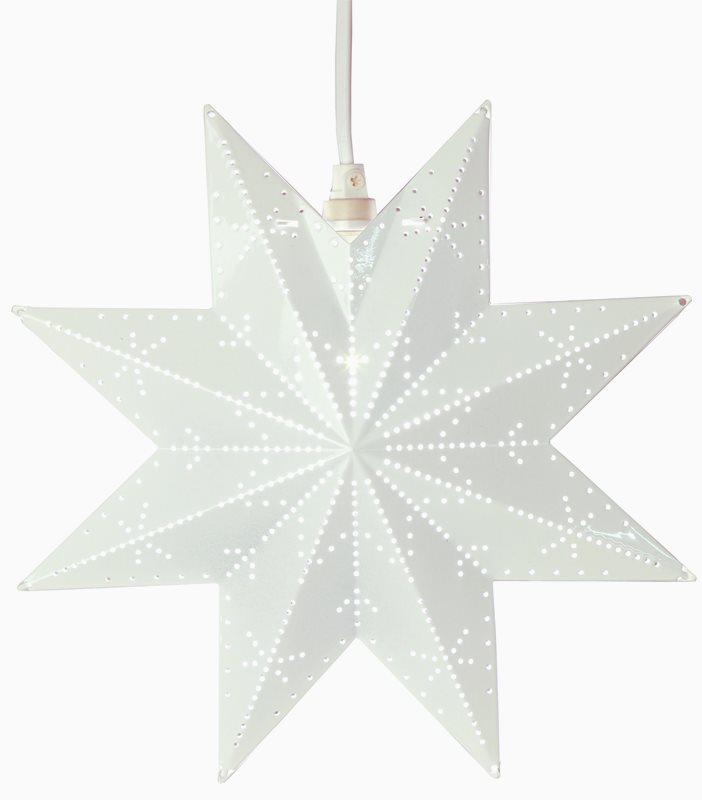 En stilfull hvit metallstjerne som gir et mykt og rolig lys i adventstiden. Den rene designen og de fine detaljene gjør den til en tidløs vindusdekorasjon som passer i alle hjem. Med plass til en lyskilde skaper den en varm og koselig julestemning. Produsert i Sverige.