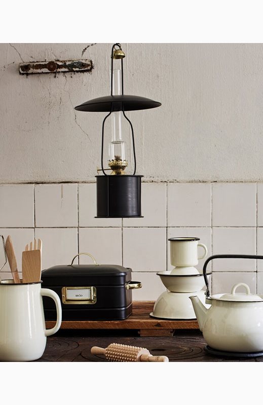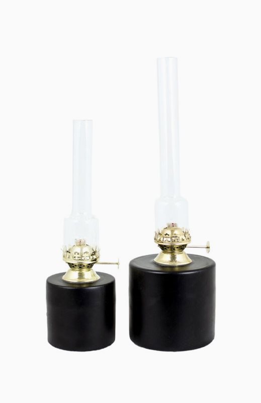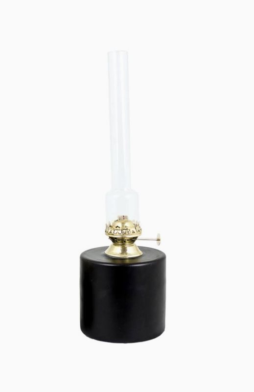 Klassisk parafinlampe i rett modell, utført i sortlakkert metall med detaljer i messing. En tidløs oljelampe som gir et varmt og stemningsfullt lys – perfekt til hytte, terrasse eller som dekorativ belysning i hjemmet.